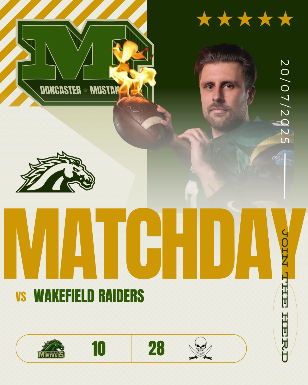 The Doncaster Mustangs closed out their 2025 home schedule with a spirited effort against local rivals Wakefield Raiders, ultimately falling 28-10 in challenging conditions at Wheatley Hills. Despite the final score, the rain-soaked contest showcased the heart and determination that has defined this Mustangs squad all season.